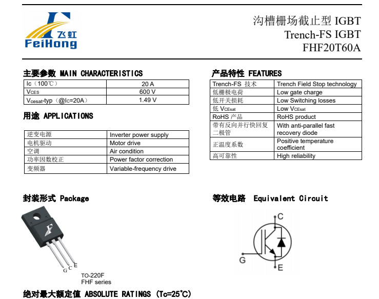 FHF20T60A型號單管擁有出色的導通壓降與極短的拖尾電流,能為電機驅動開發的客戶在優化系統效率時提供有力的幫助。